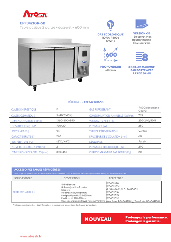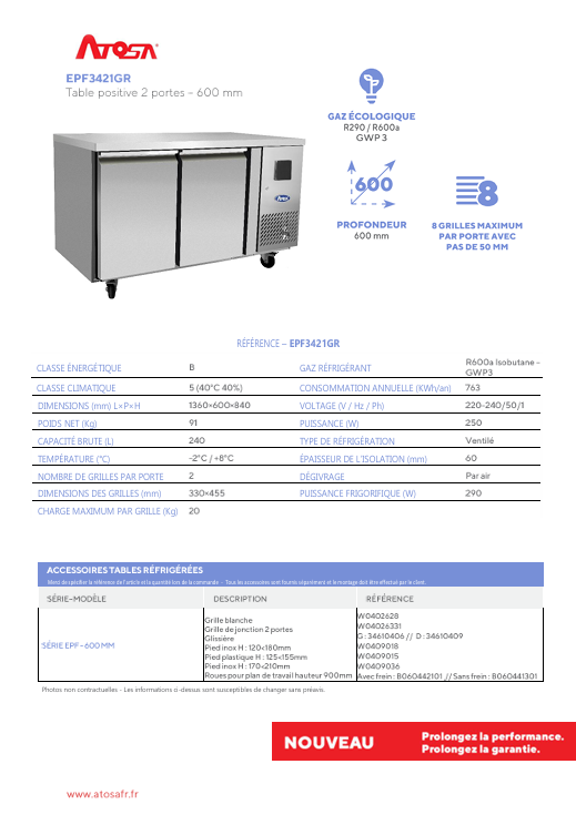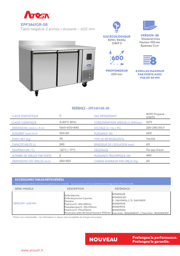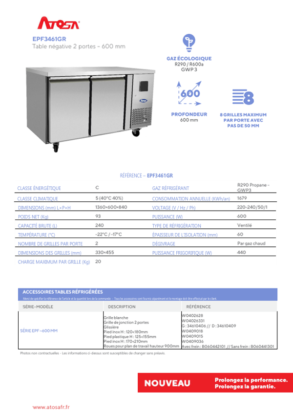 ATOSA / Tables réfrigérées - Profondeur 600 mm