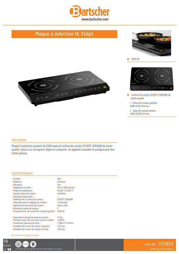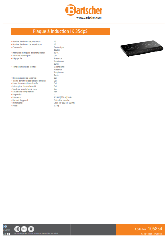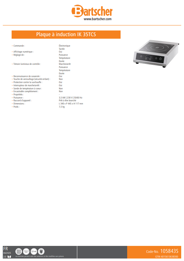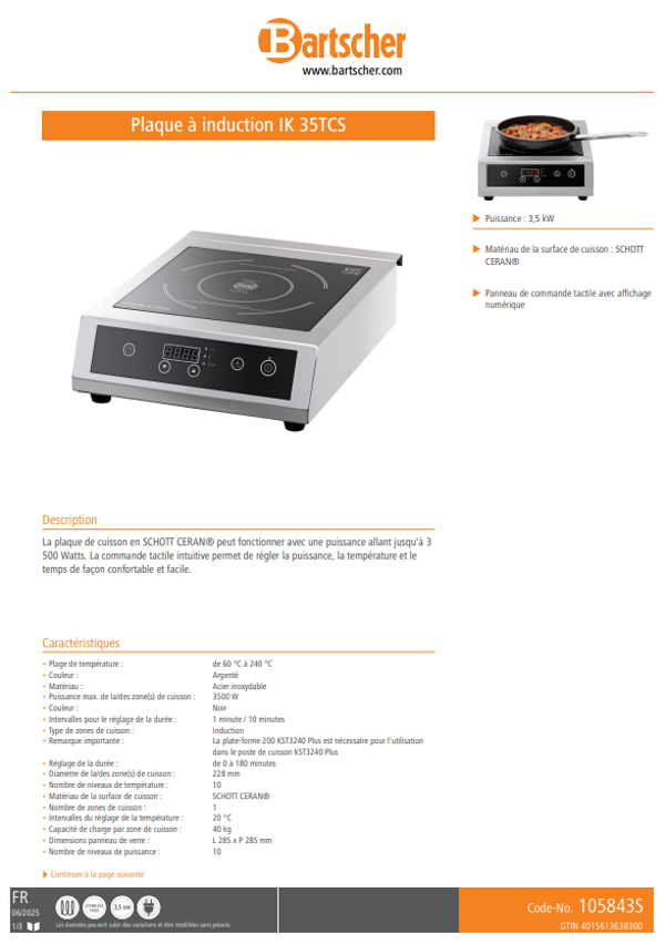 BARTSCHER / Plaque à induction